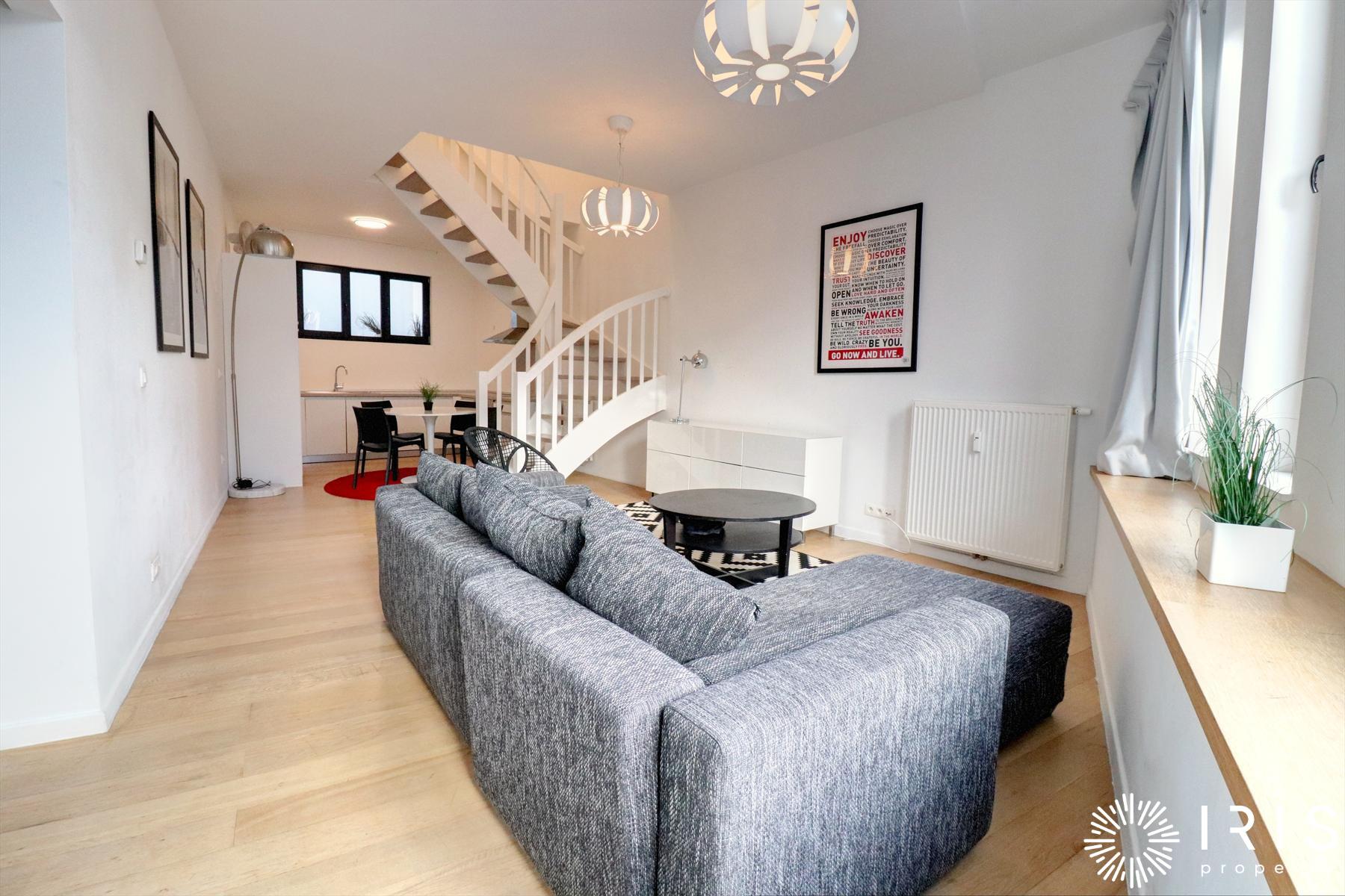 *** SOLD *** Beautiful bright and renovated 2 bedroom apartment of ± 107 m² with bathroom and shower room located near the Grand Place, the Bourse and Place Sainte-Catherine. The apartment is located in a neoclassical building which was completely renovated in 2013. Close to the trendiest shops in the city, a few minutes walk from the bars and restaurants, you will be seduced by the modern comfort and the refined style of this beautiful apartment DUPLEX. It consists of : entrance hall, separate toilet, living room of ± 45 m² with equipped American kitchen, 2 bedroom of ± 14 and 9 m², 1 bathroom, 1 shower room and cellar. VIRTUAL TOUR to see ! Compliant electricity certificate, ventilation, double glazing, high ceilings of ± 3 meters, wooden floors, ... Info & visit on +32 478 31 56 71 or info@irisproperty.be